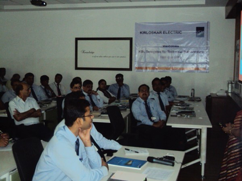 Detailed Technical Presentation was conducted for the Executives of Kirloskar Brothers Ltd Pune on 14th Oct. Kirloskar Electric team lead by Mr E P Ramachandran, conducted this presentation and technical interaction, attended by more than fifty executives from various functional groups and departments.